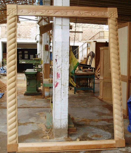 with hand carved cedar frame/molding |