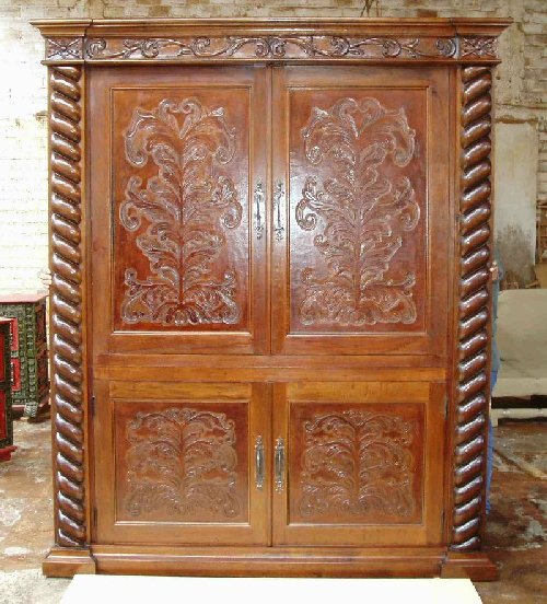 | Carved leather panel doors on